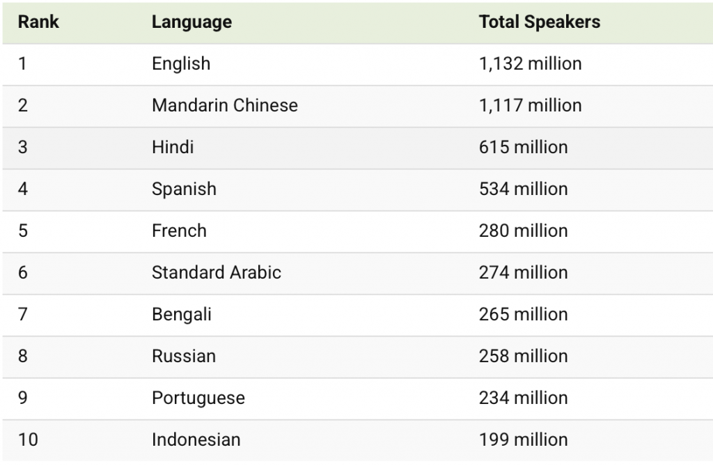 掌握什么语言最好?答案是英语或汉语,更好的答案是英语和汉语。请看下面这张图。