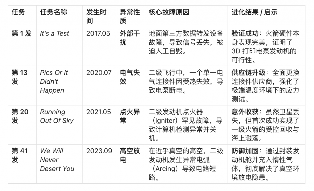 其中第1发和20发本身有点测试的意思,验证发动机和火箭回收。13发和41发确实是有问题,好在迅速定位问题找到了根因并解决了。老板Sir Peter Beck对每次异常都做了澄清,对公众完全透明,赢得了客户的充分信任。