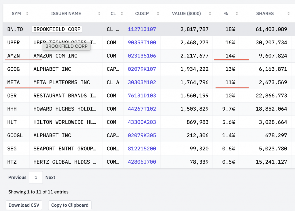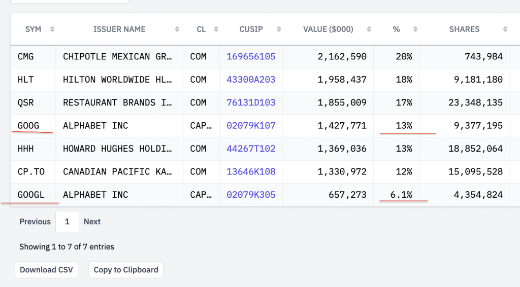 但大牛人Bill Ackman敢,有此视频分析谷歌24:09分为证,有2024Q1他的潘兴资本(Pershing Square Capital Management, L.P.)持仓为证,如下